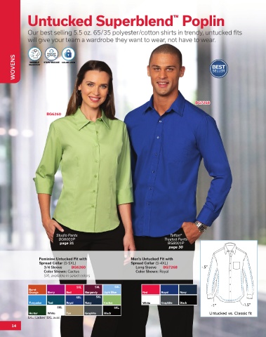 Our best selling 5.5 oz. 65/35 polyester/cotton shirts in trendy, untucked fits