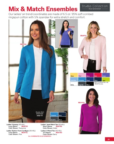 Our ladies' on trend coordinates are made of 6.5 oz. 95% soft combed