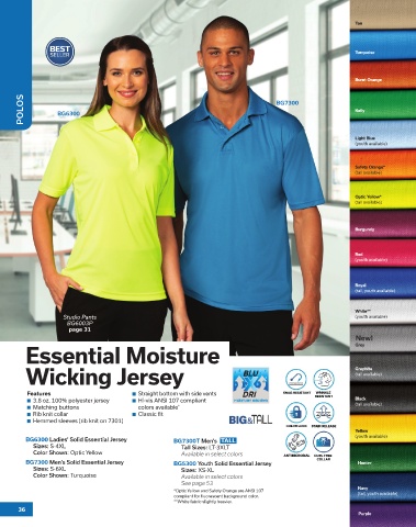 BG6300 Ladies’ Solid Essential Jersey BG7300T Men’s TALL
