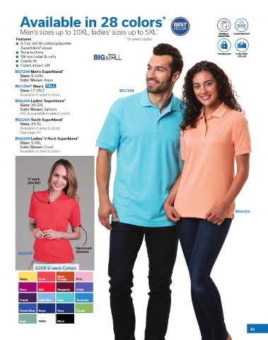 Available in 28 colors * BEST WRINKLE RESISTANT STAIN RELEASE