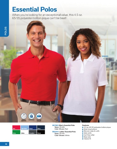 BG7401 Men’s Essential Polo Features