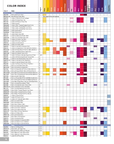 Page # Maize Yellow Mango Salmon Coral Orange Rose Sangria Berry Burgundy Burgundy/ White Violet Plum Grape Purple Light Blue Faded Blue Aqua Turquoise French Blue Royal Navy Cactus Olive Hunter White Natural Khaki Chocolate Graphite Black