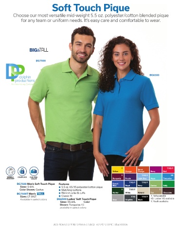 Available in select colors BG6500 Ladies’ Soft Touch Pique Grey Graphite Black XS: Ladies’ XS available
